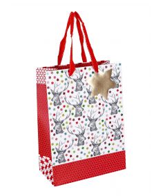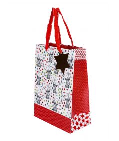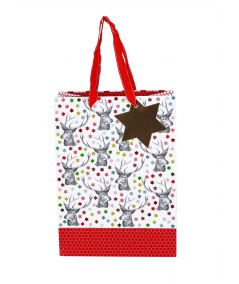 VREČKA DARILNA 30x22x11cm JELENI BELO/RDEČA NL