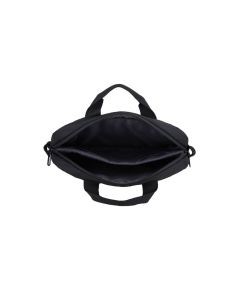 Izdelana iz vzdržljivega poliestra, torba zagotavlja dolgotrajno uporabo in odpornost proti obrabi. Črna barva in minimalističen dizajn poudarjata profesionalen videz, ki se poda k vsaki poslovni ali študijski priložnosti.
