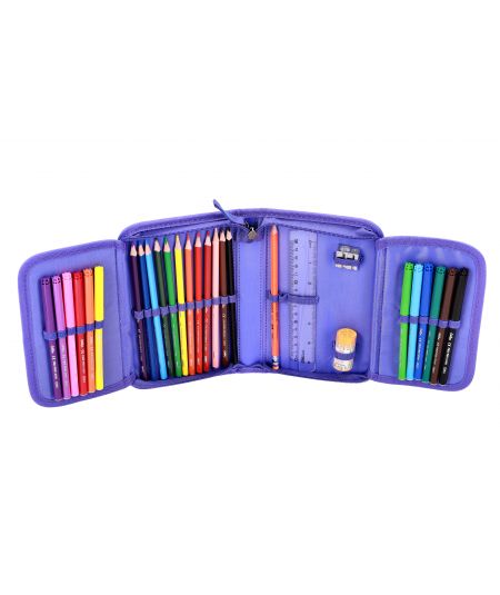 Set vključuje šolsko torbo, vrečko za copate, polno in prazno peresnico. Nudi prostor za vse šolske potrebščine z dodatnimi predali za organizirano shranjevanje.